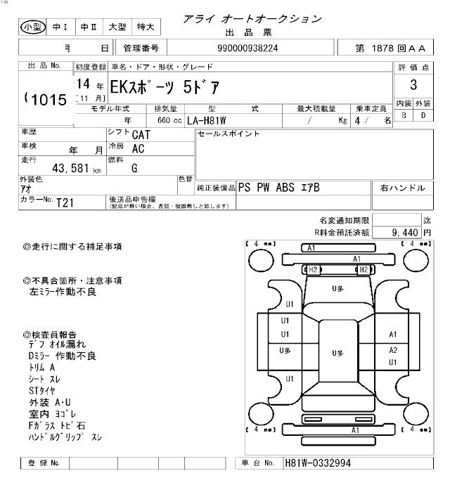 Все аукционы MITSUBISHI EK SPORTS