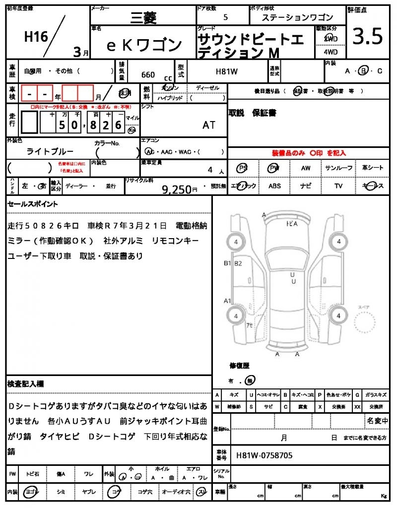 Все аукционы MITSUBISHI EK WAGON