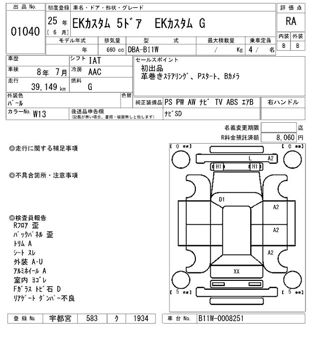 MITSUBISHI EK CUSTOM EK CUSTOM G - лот 1040