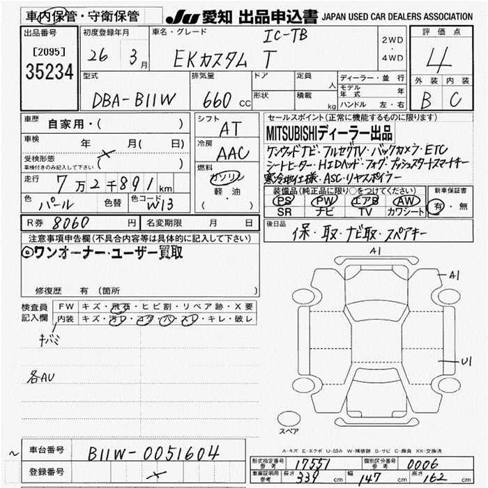 Все аукционы MITSUBISHI EK CUSTOM