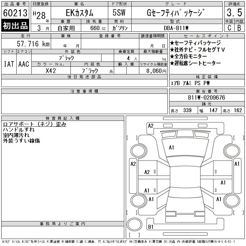 MITSUBISHI EK CUSTOM G SAFETY PACKAGE - лот 60213