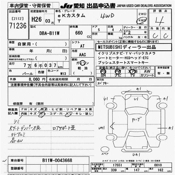 Все аукционы MITSUBISHI EK CUSTOM