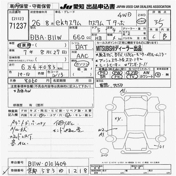 Все аукционы MITSUBISHI EK CUSTOM