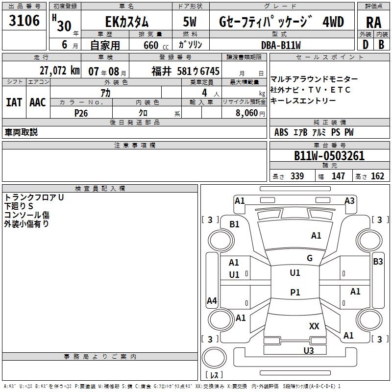 MITSUBISHI EK CUSTOM - лот 3106