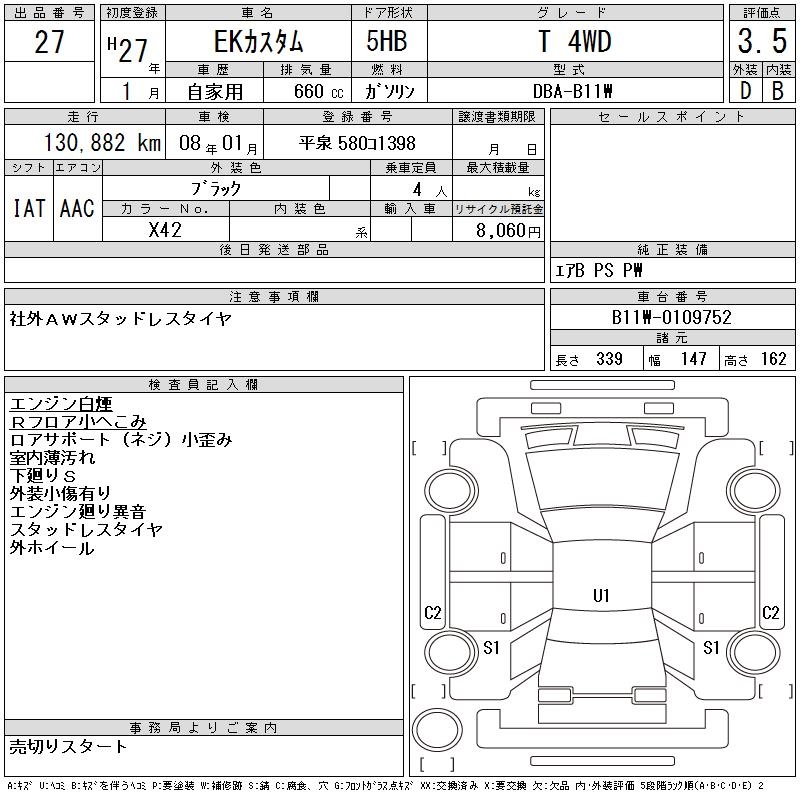 Все аукционы MITSUBISHI EK CUSTOM