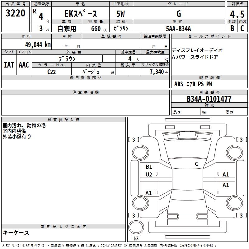 MITSUBISHI EK SPACE G - лот 3220