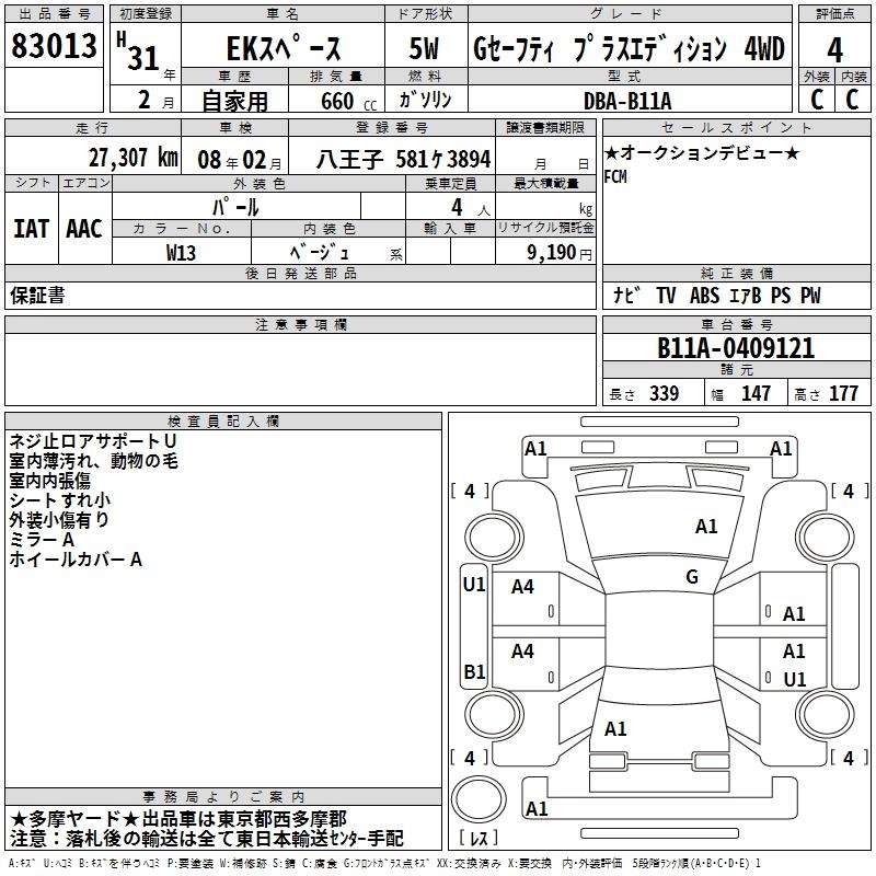 MITSUBISHI EK SPACE G SAFETY PLUS EDI SI4WD - лот 83013