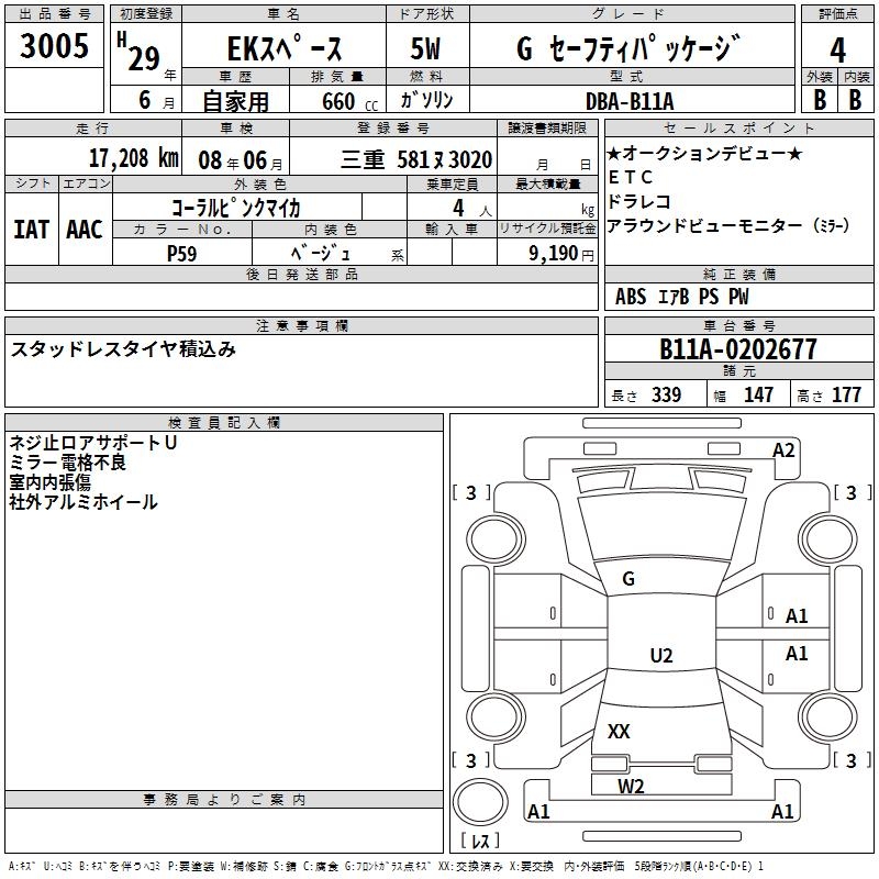 MITSUBISHI EK SPACE G SAFETY PACKAGE - лот 3005