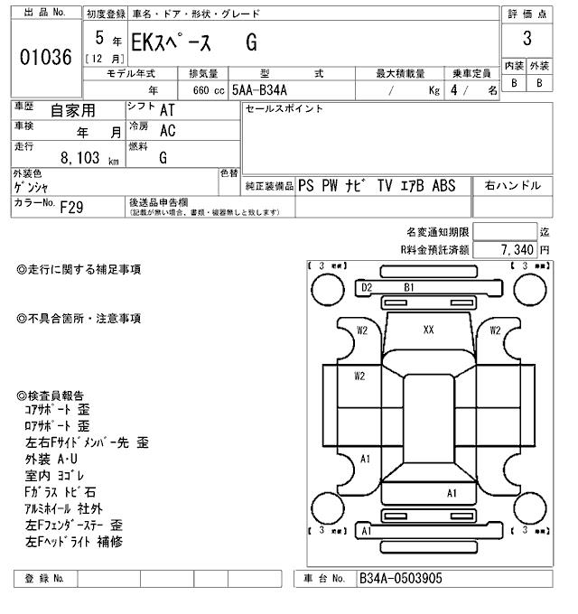 MITSUBISHI EK SPACE G - лот 1036