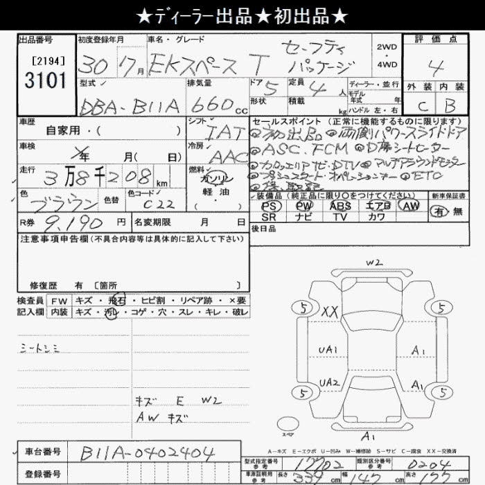 MITSUBISHI EK SPACE T SAFETY PACKAGE - лот 3101