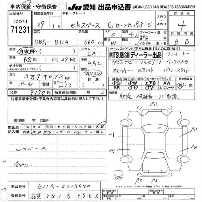 MITSUBISHI EK SPACE G SAFETY PACKAGE - лот 71231