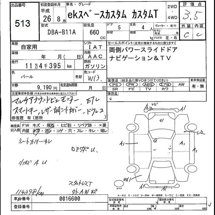 MITSUBISHI EK SPACE CUSTOM T - лот 513