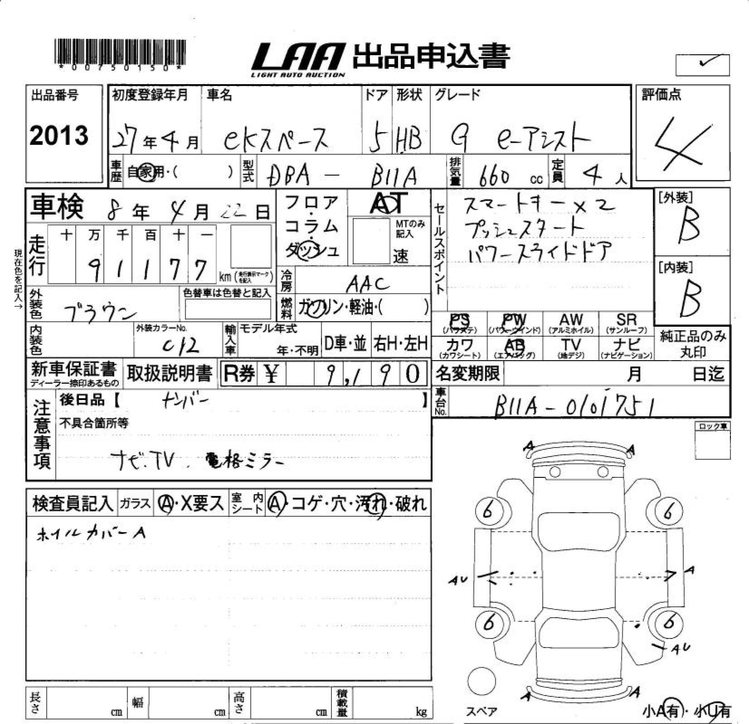 MITSUBISHI EK SPACE G E- ASSIST - лот 2013