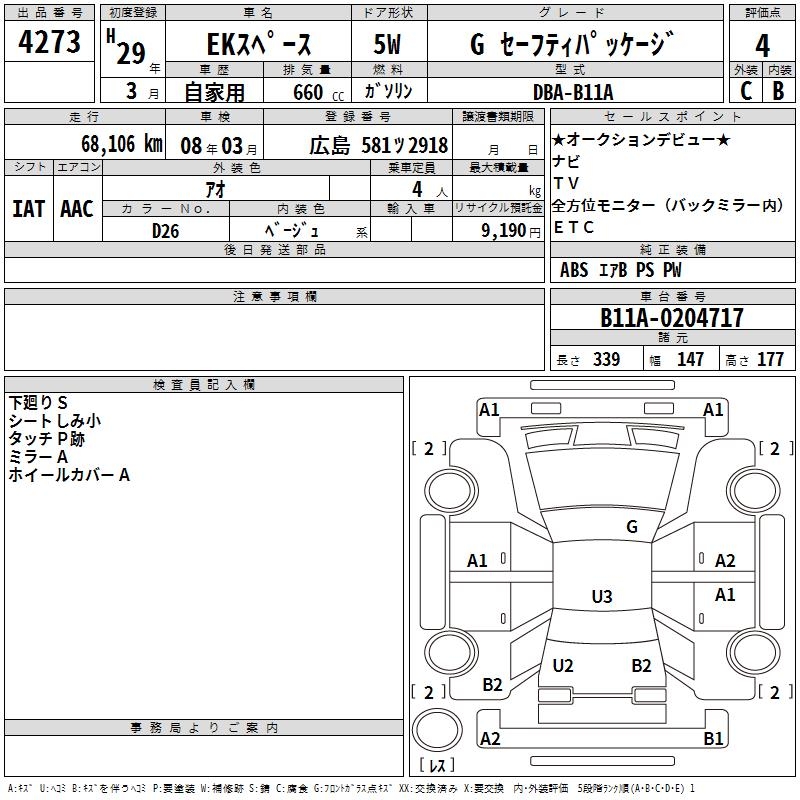 MITSUBISHI EK SPACE G SAFETY PACKAGE - лот 4273