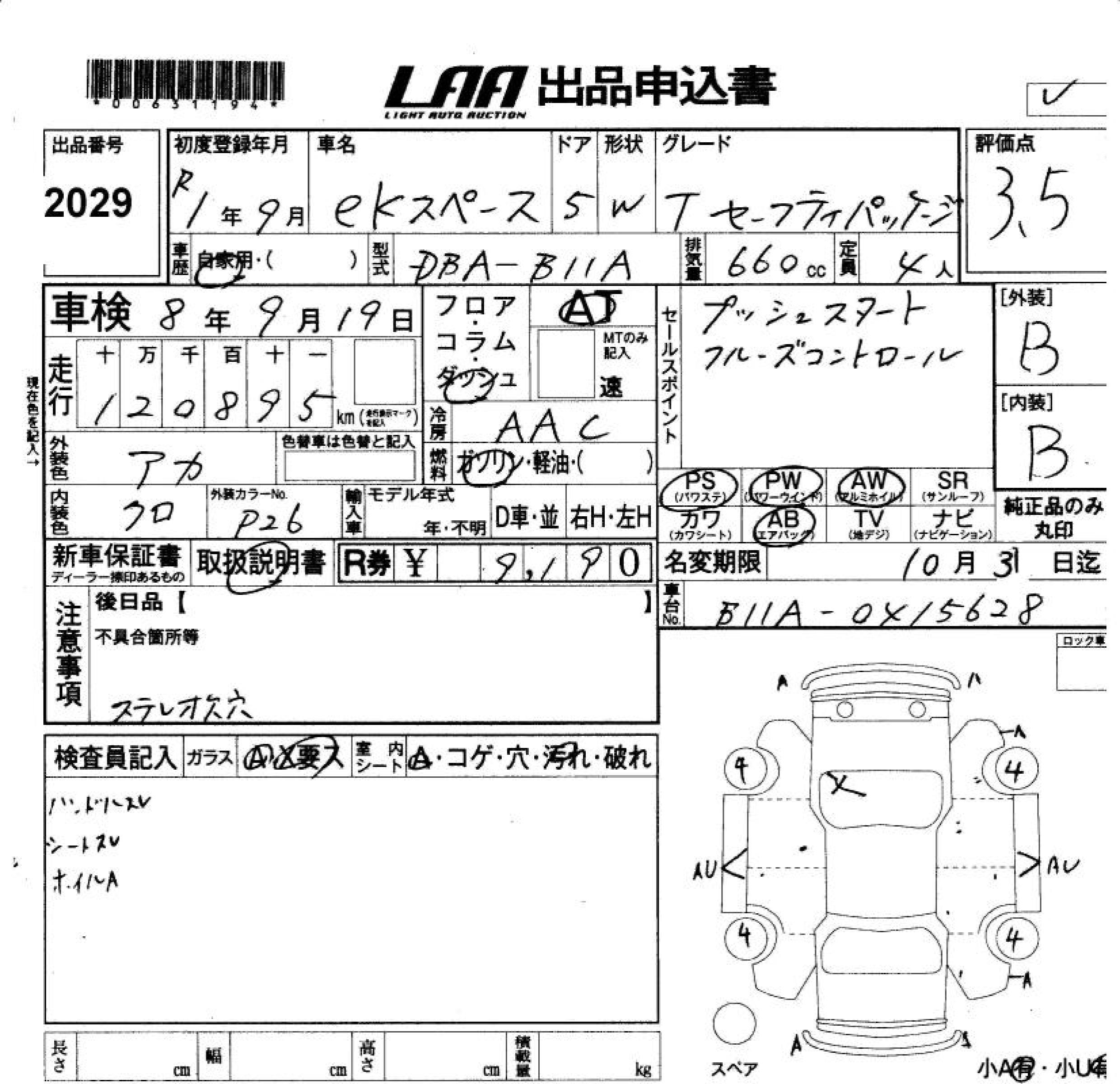 MITSUBISHI EK SPACE T SAFETY PACKAGE - лот 2029