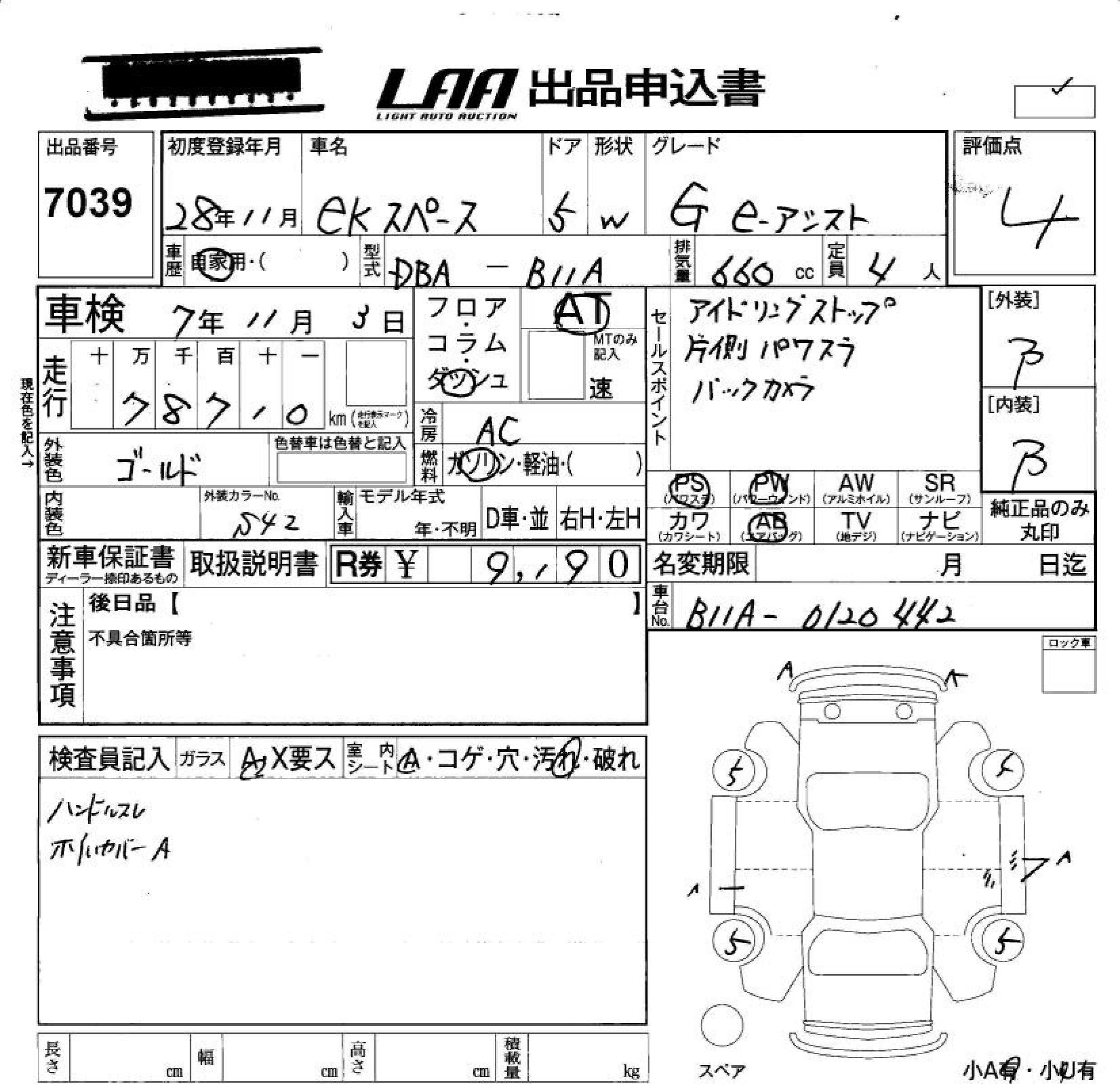 MITSUBISHI EK SPACE - лот 7039