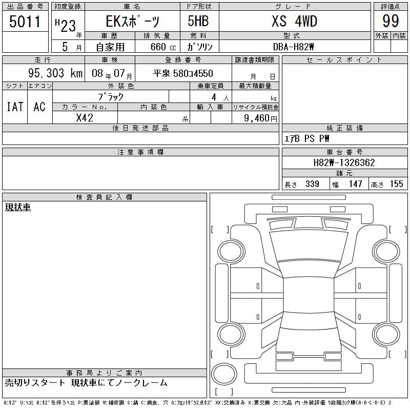 MITSUBISHI EK SPORTS XS 4WD - лот 5011