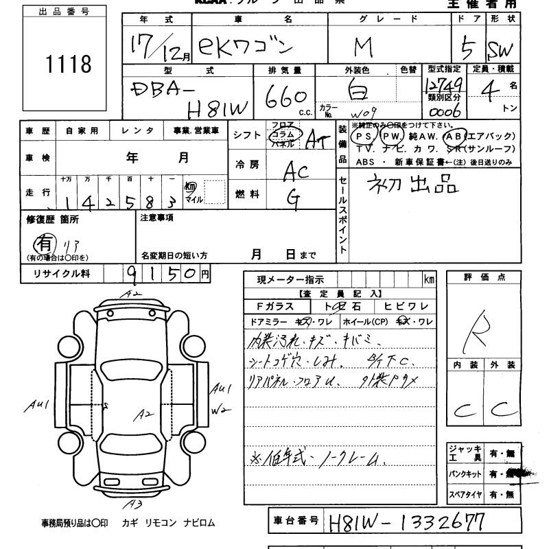 Все аукционы MITSUBISHI EK WAGON