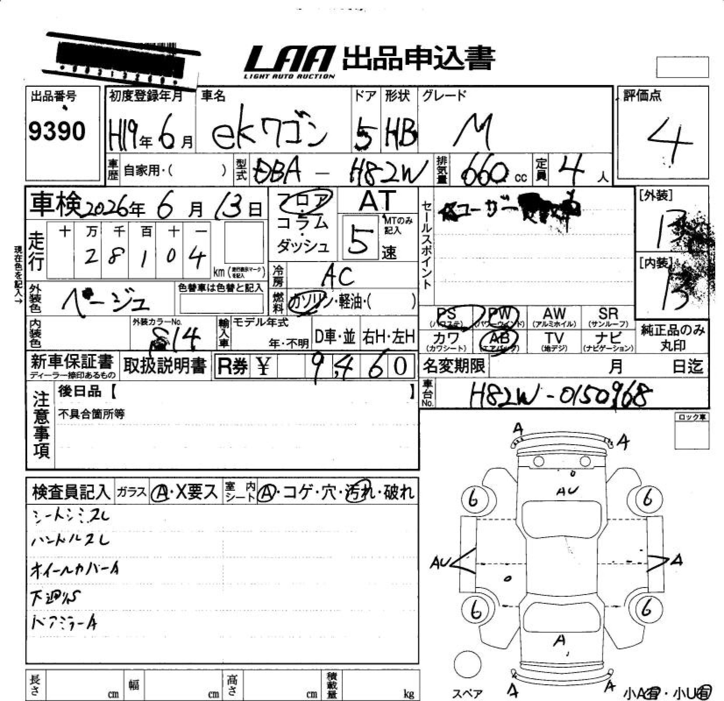MITSUBISHI EK WAGON M - лот 9390