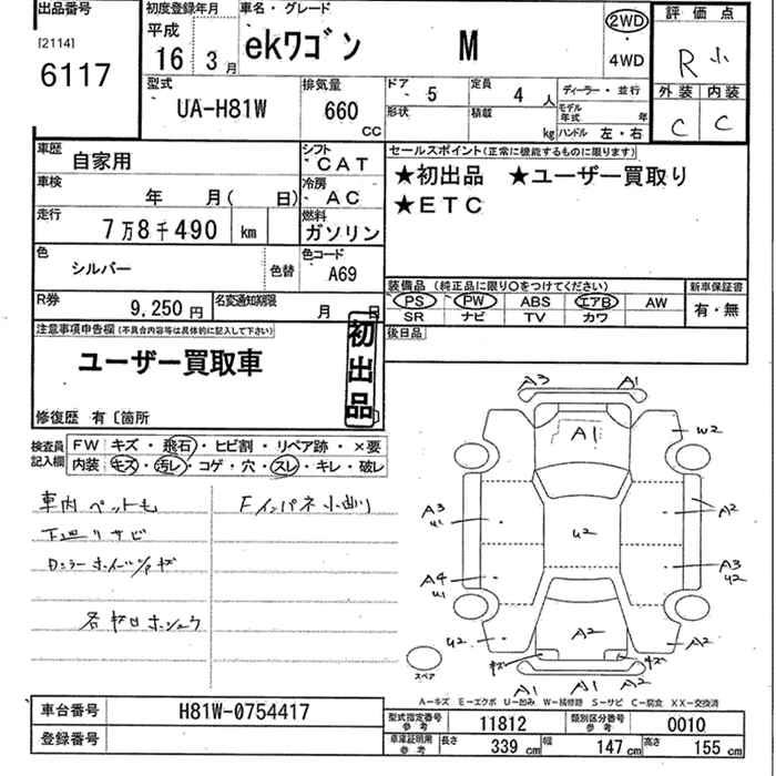 Все аукционы MITSUBISHI EK WAGON