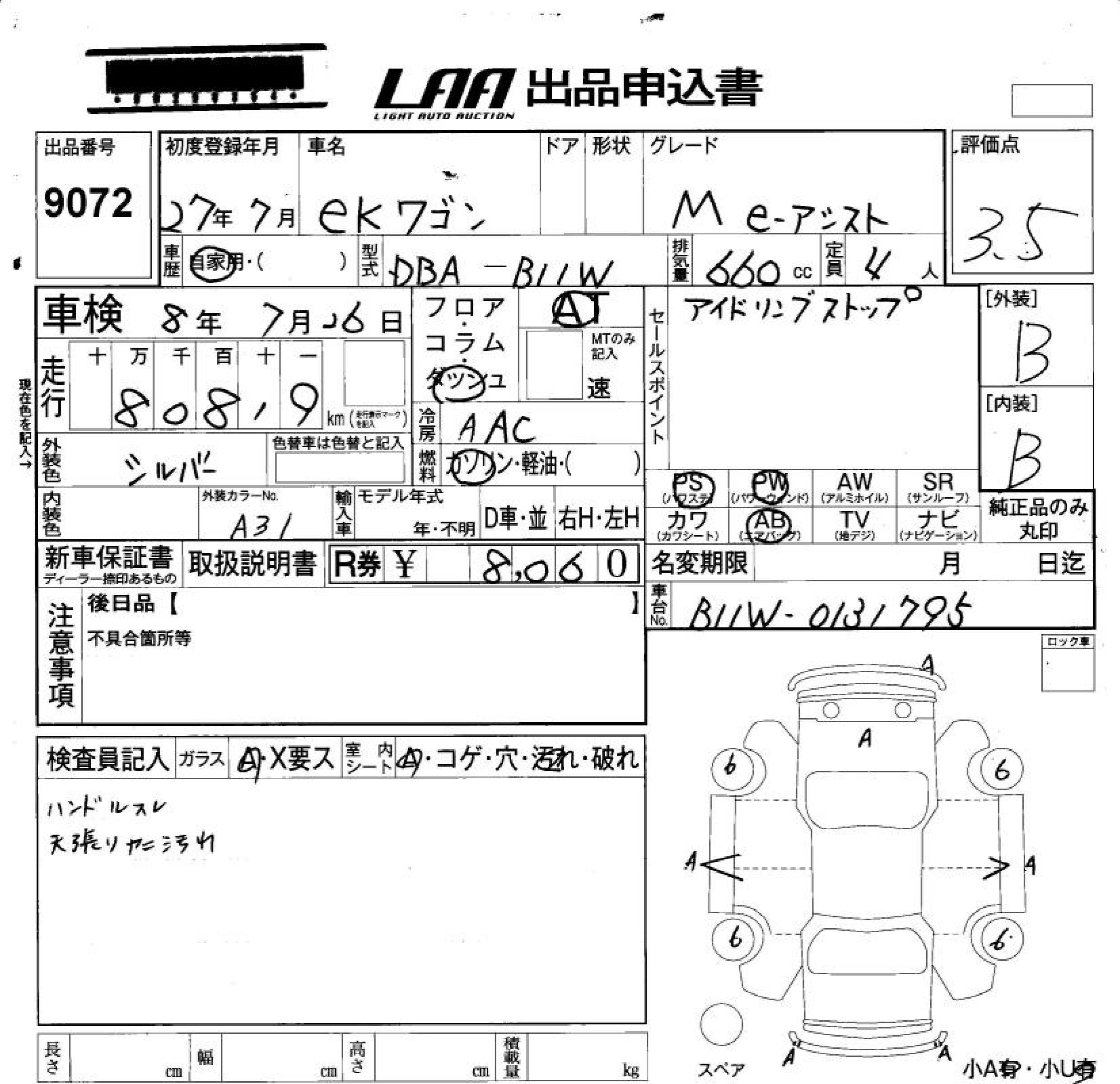 Все аукционы MITSUBISHI EK WAGON