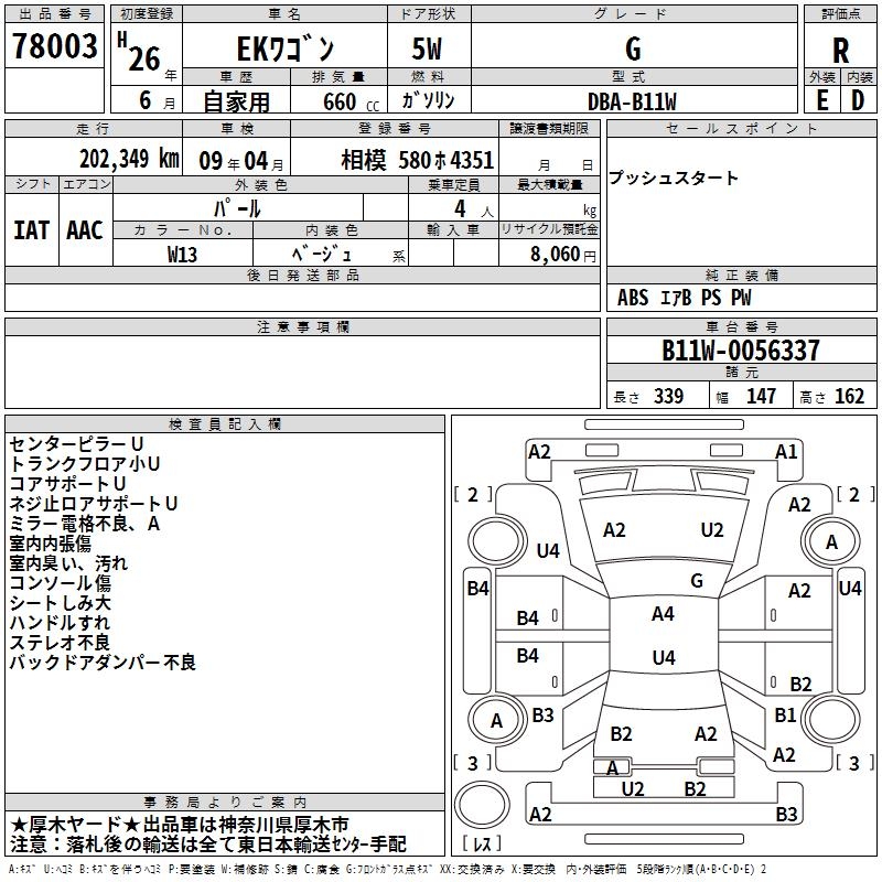 MITSUBISHI EK WAGON G - лот 78003