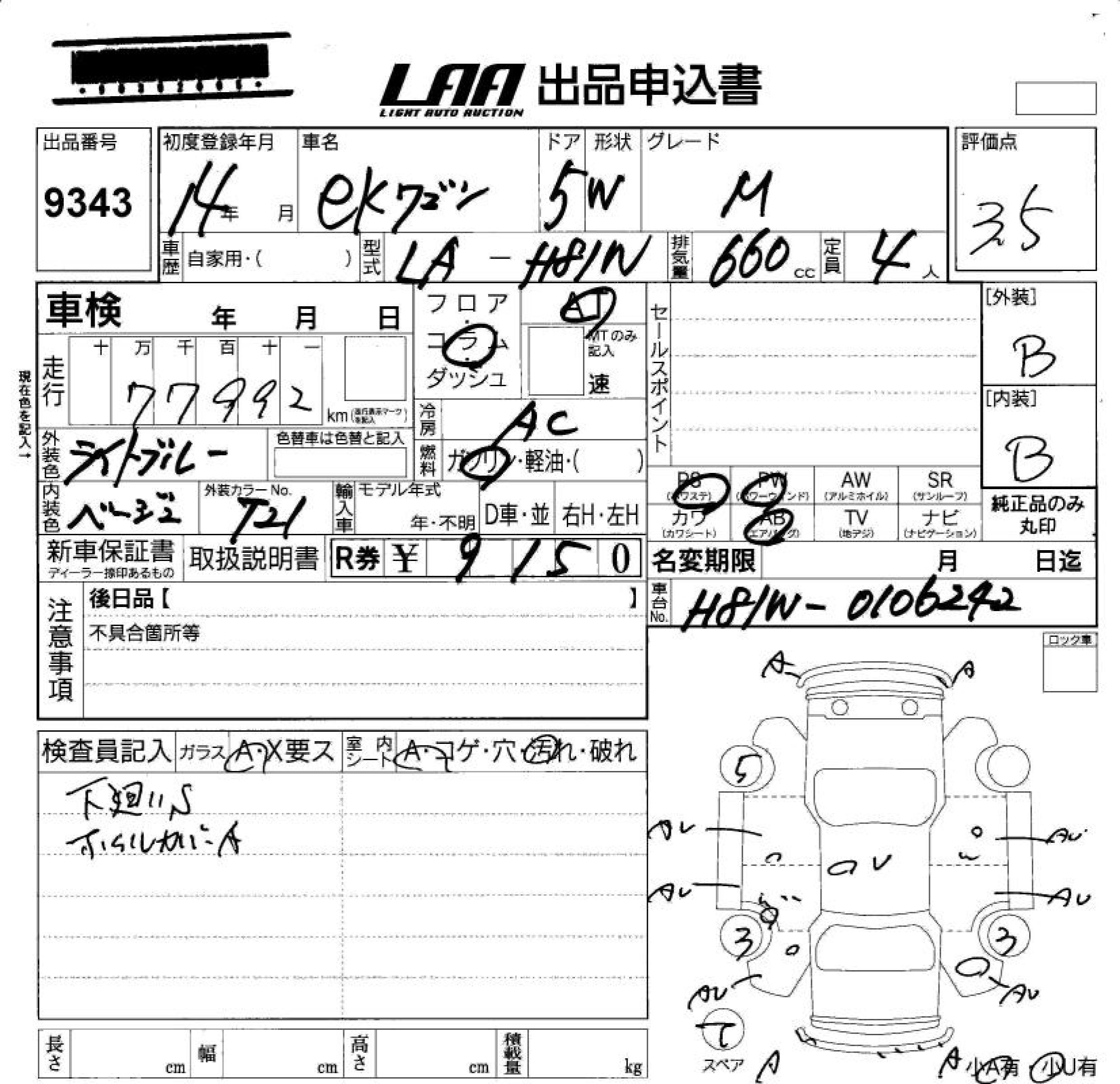 Все аукционы MITSUBISHI EK WAGON