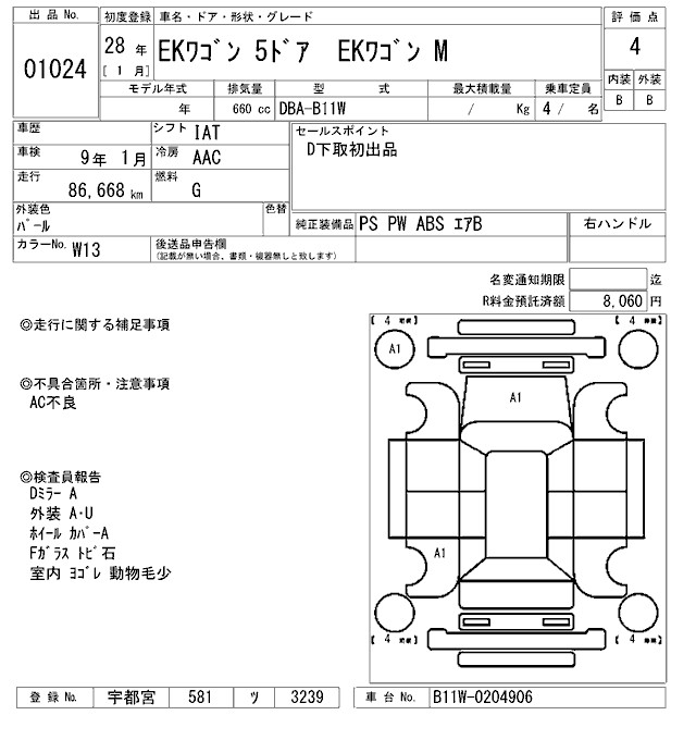 Все аукционы MITSUBISHI EK WAGON