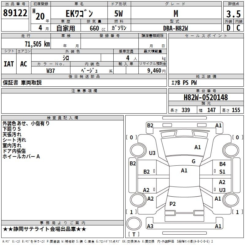 MITSUBISHI EK WAGON - лот 89122