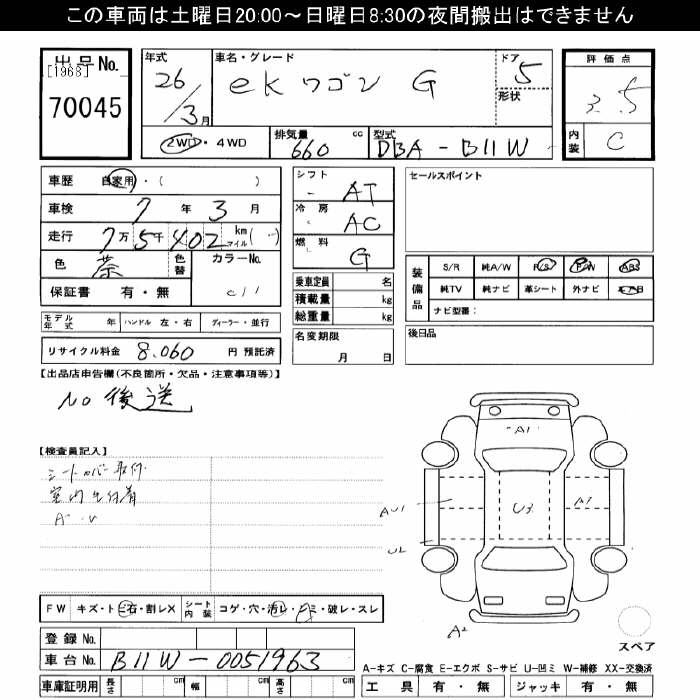 MITSUBISHI EK WAGON - лот 70045