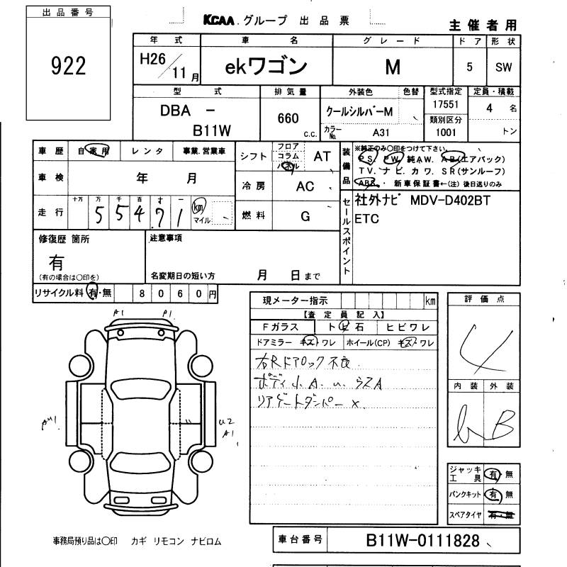 MITSUBISHI EK WAGON - лот 922