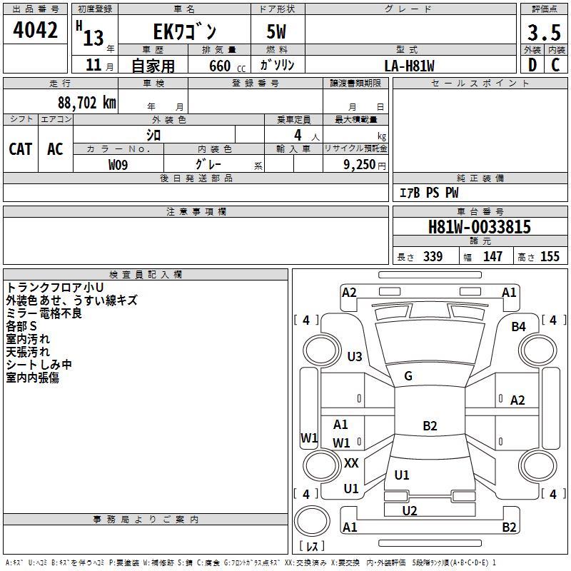 MITSUBISHI EK WAGON - лот 4042