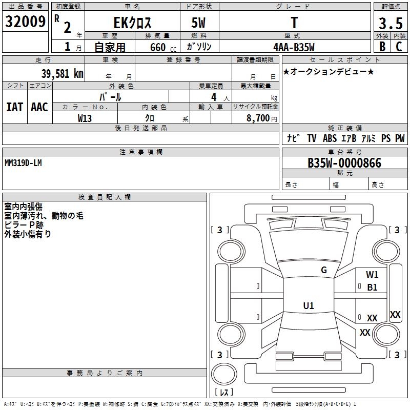 MITSUBISHI EK X T - лот 32009