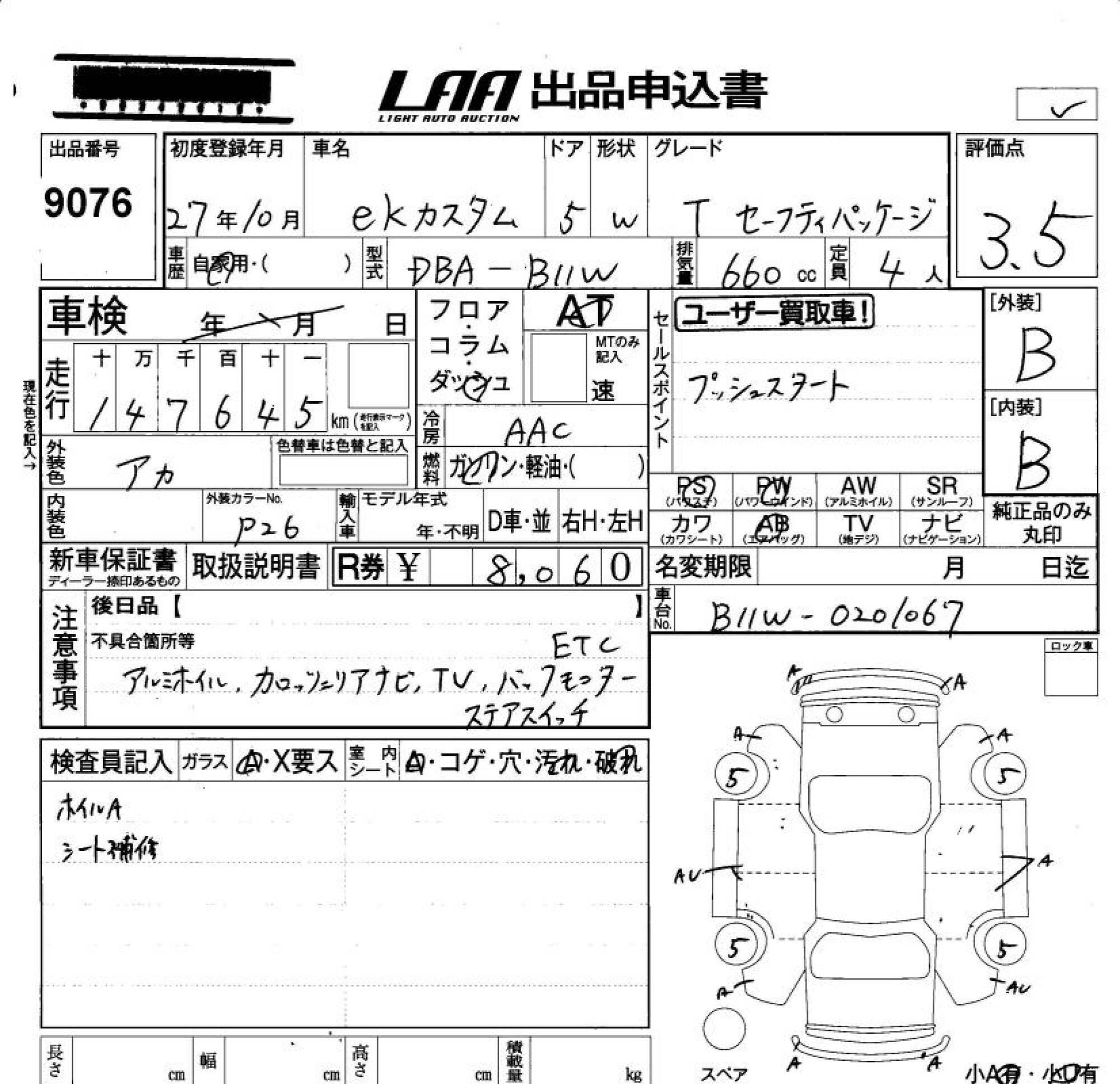 Все аукционы MITSUBISHI EK CUSTOM