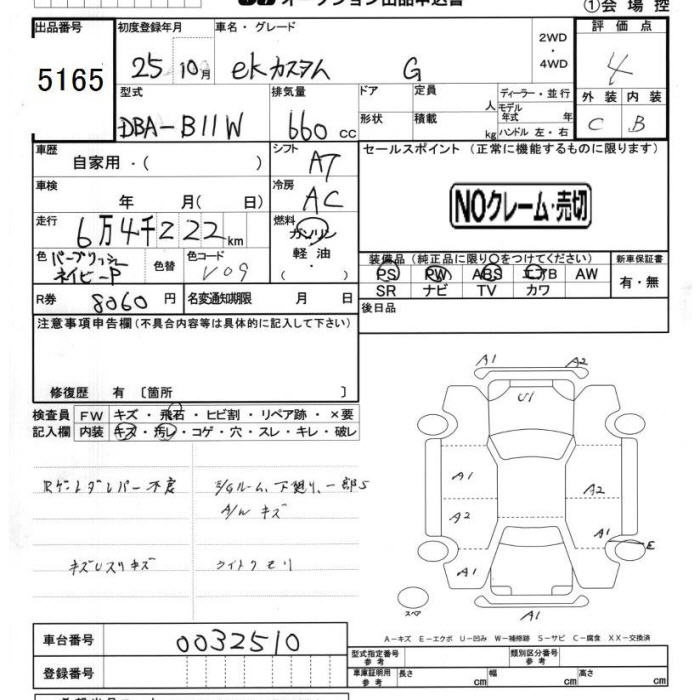 MITSUBISHI EK CUSTOM - лот 5165