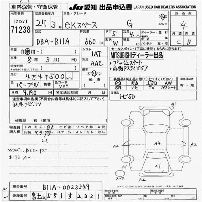 MITSUBISHI EK SPACE - лот 71238