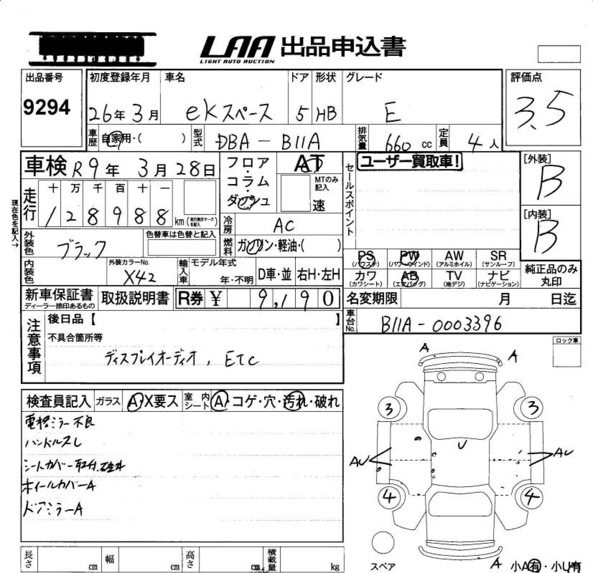 MITSUBISHI EK SPACE - лот 9294