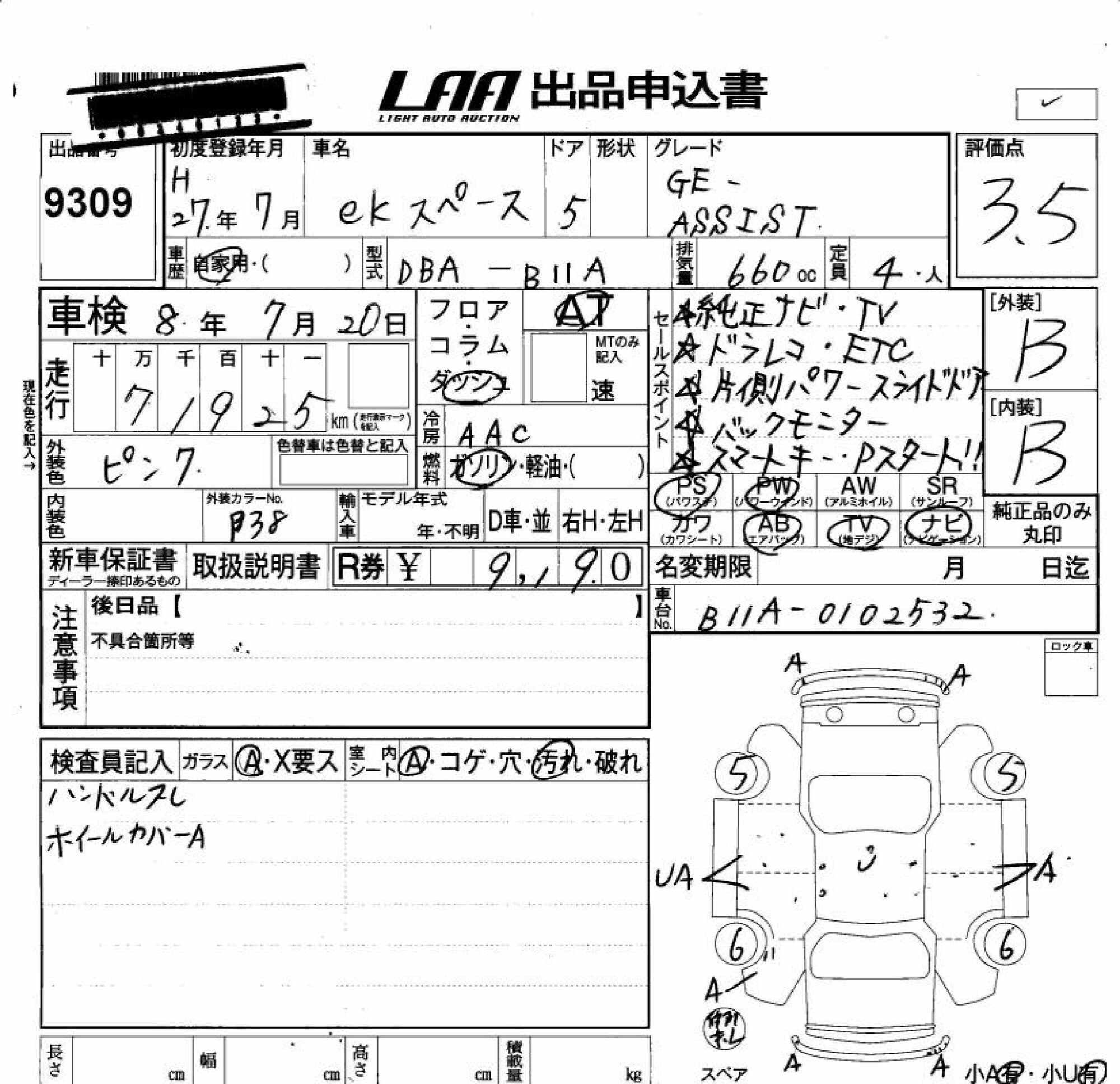 MITSUBISHI EK SPACE - лот 9309