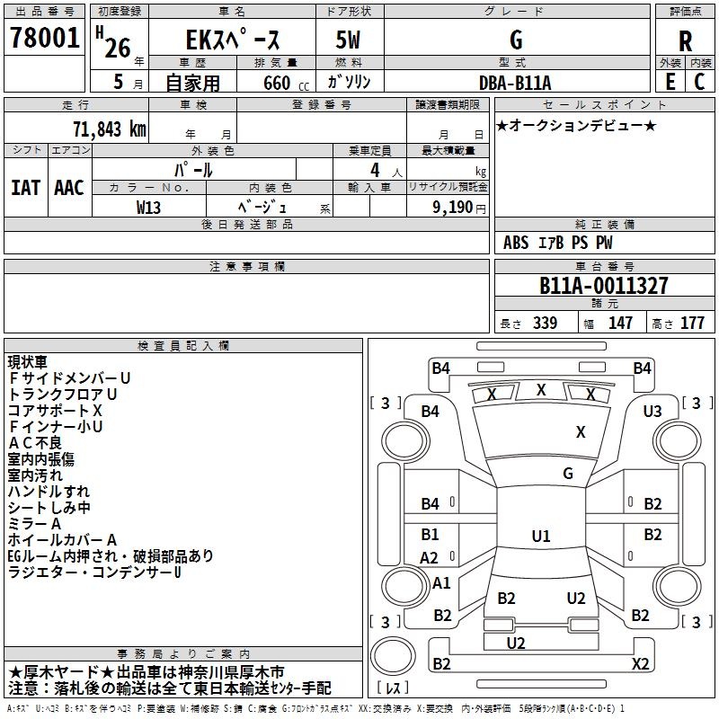 MITSUBISHI EK SPACE - лот 78001