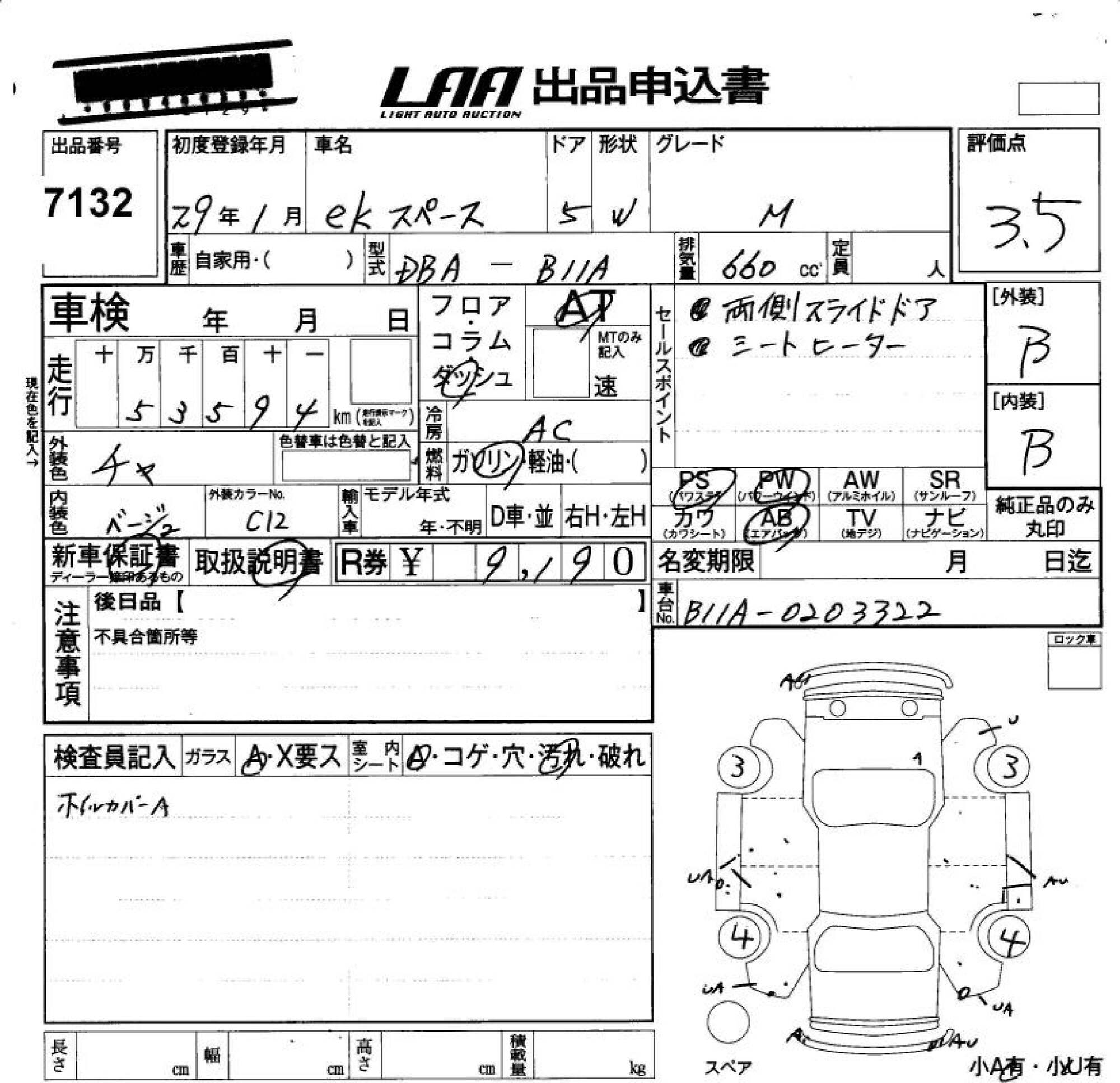 MITSUBISHI EK SPACE - лот 7132