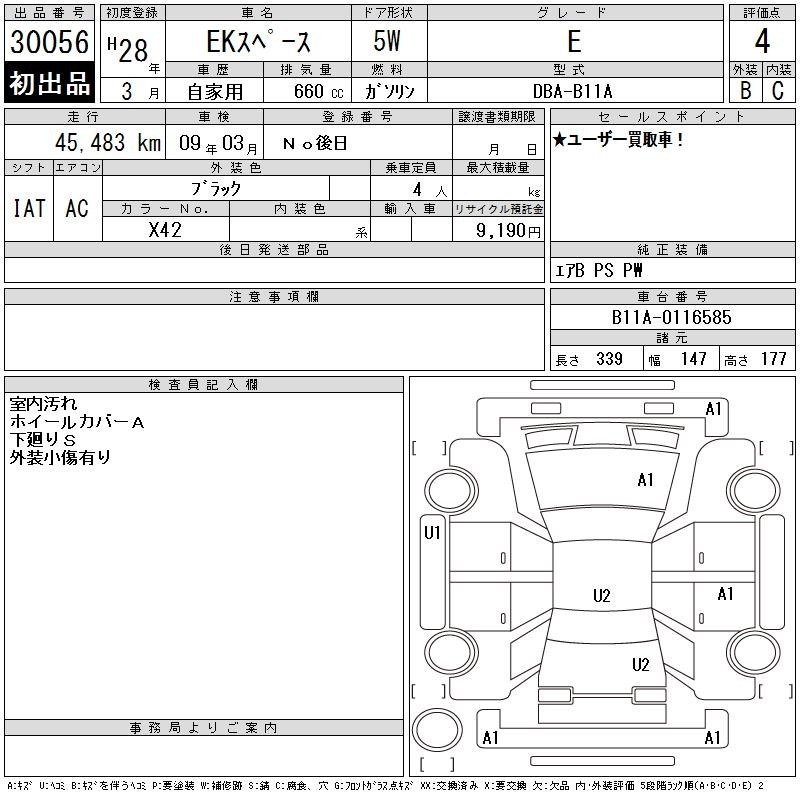 MITSUBISHI EK SPACE - лот 30056