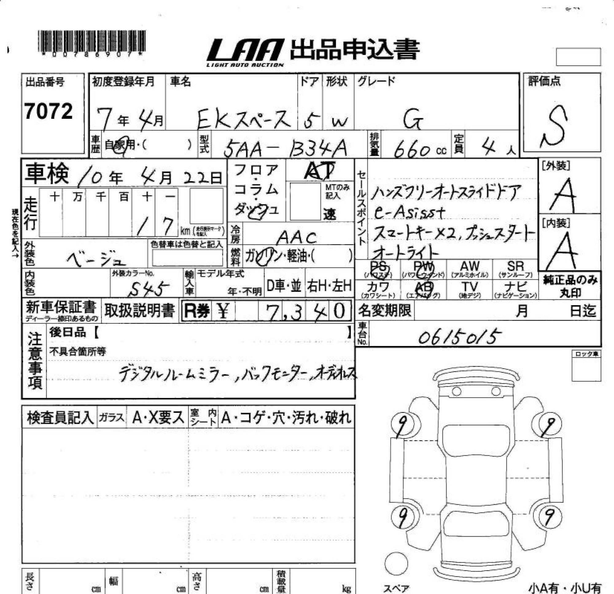 MITSUBISHI EK SPACE - лот 7072