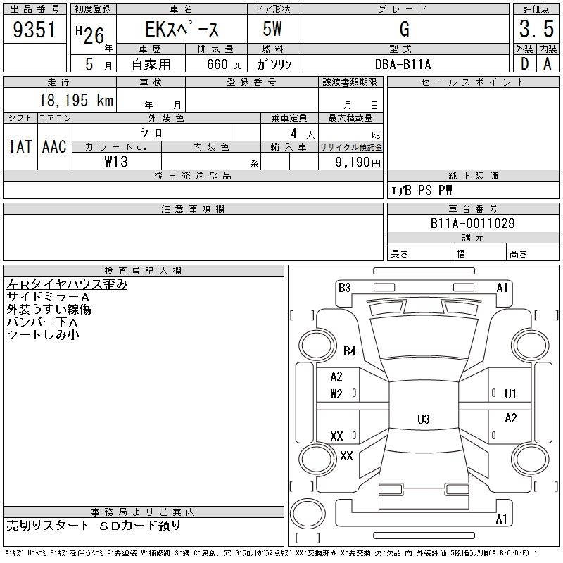 MITSUBISHI EK SPACE - лот 9351