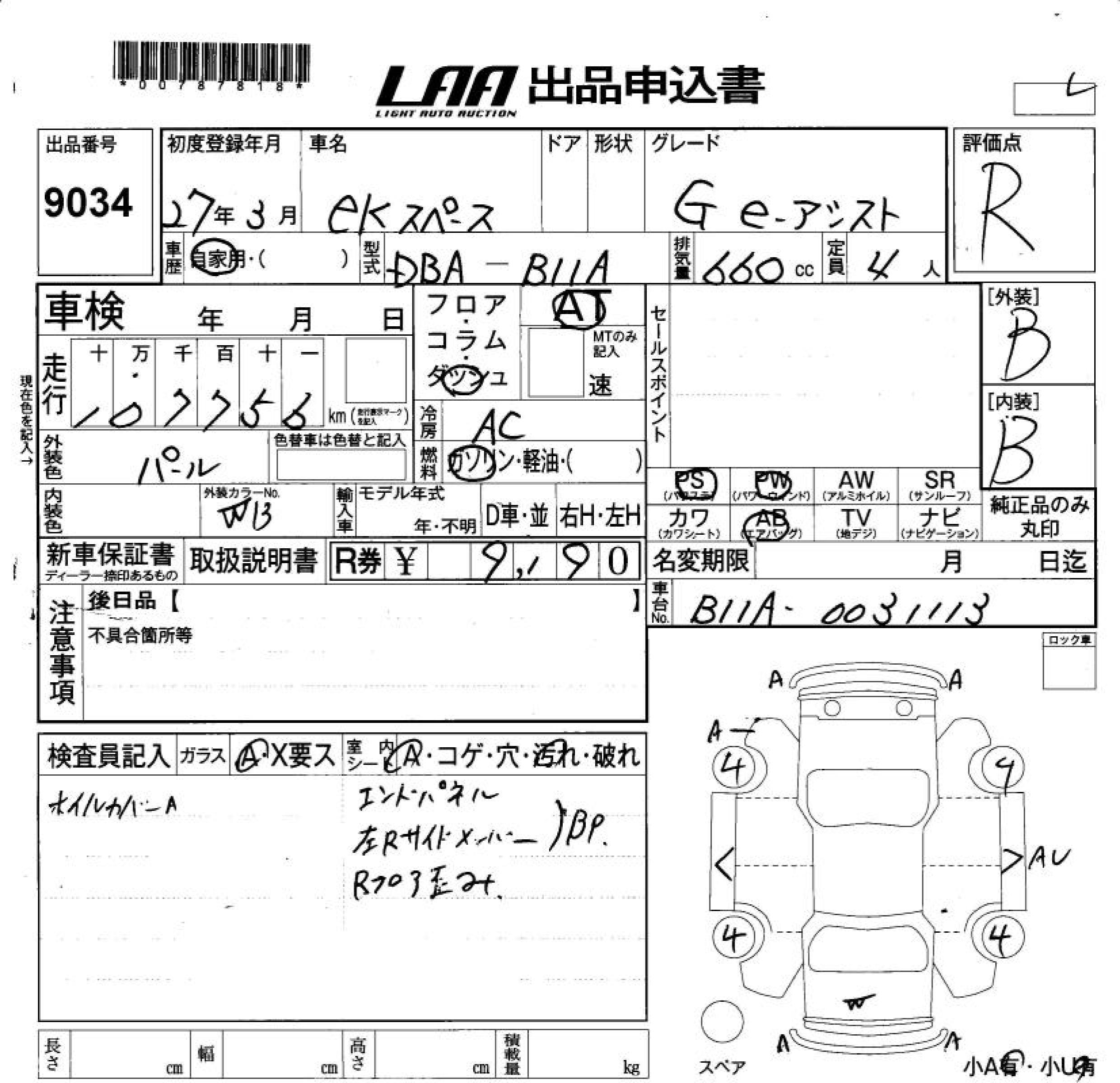 MITSUBISHI EK SPACE - лот 9034