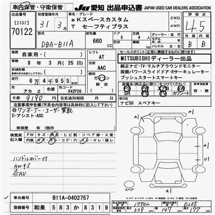 Все аукционы MITSUBISHI EK SPACE CUSTOM