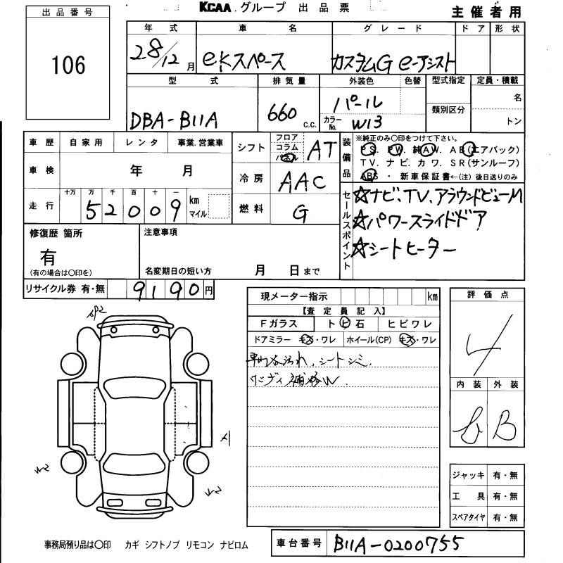 Все аукционы MITSUBISHI EK SPACE CUSTOM