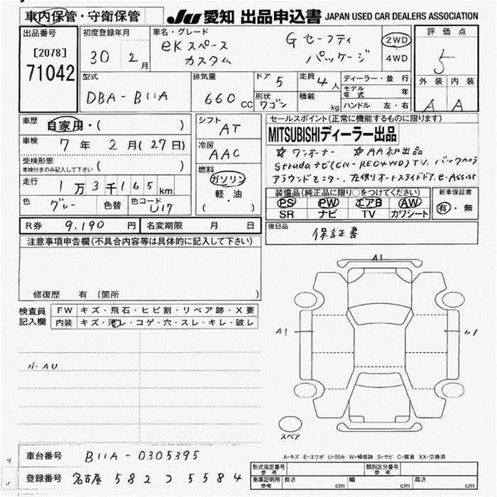 MITSUBISHI EK SPACE CUSTOM - лот 71042
