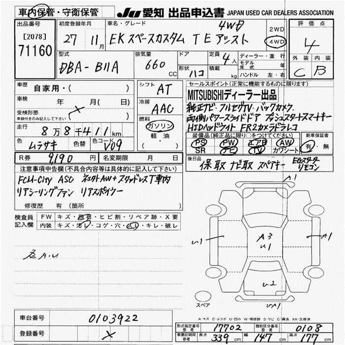 Все аукционы MITSUBISHI EK SPACE CUSTOM