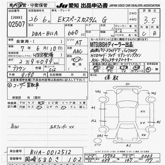 Все аукционы MITSUBISHI EK SPACE CUSTOM