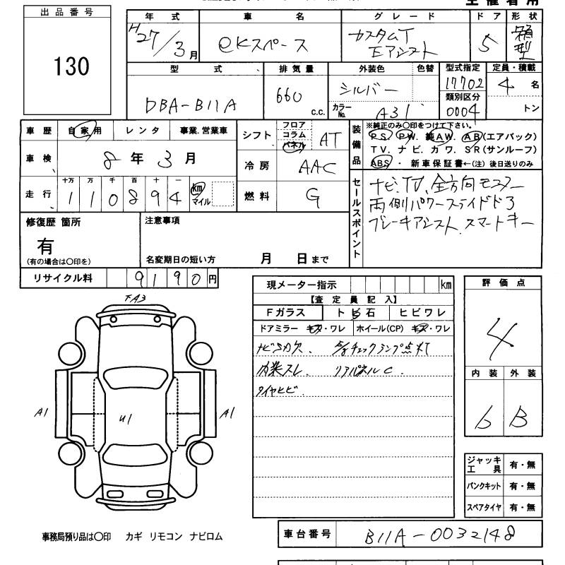 Все аукционы MITSUBISHI EK SPACE CUSTOM